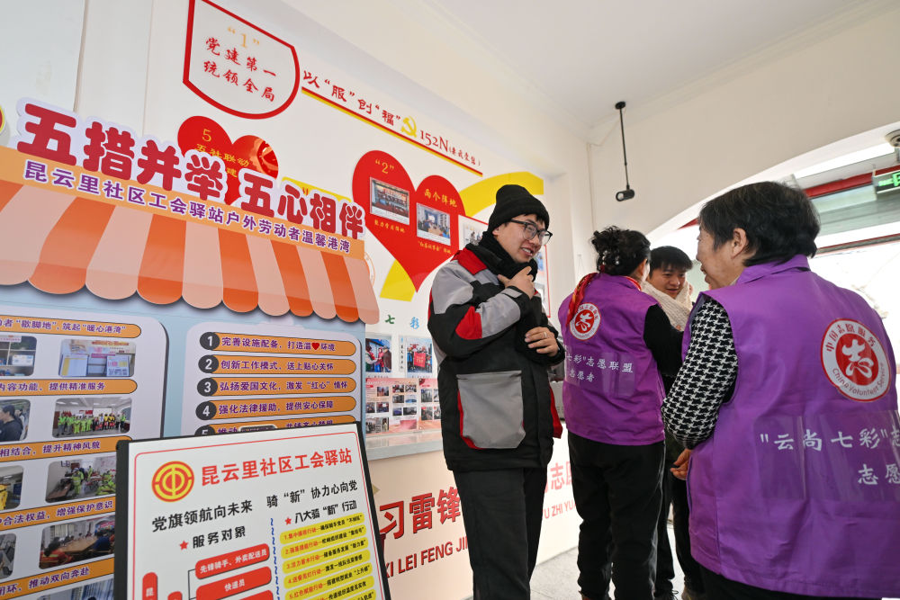 不僅僅是張德犇,越來越多的新就業(yè)群體在天津這座城市感受到了溫暖。走進紅橋區(qū)總工會在紅旗社區(qū)建設(shè)的工會驛站,外賣騎手張興智送完一單外賣后來到驛站喝口熱水,他和工作人員你一言我一語地輕松交談,聊起了社區(qū)里的新鮮事。