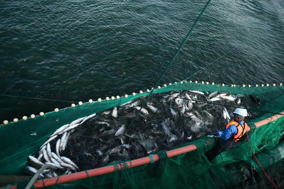 “傳統(tǒng)吊網(wǎng)捕撈會(huì)讓虹鱒魚體內(nèi)因緊張產(chǎn)生更多肌酸。我們現(xiàn)在用吸魚泵連魚帶水直接送入車間,保證魚肉質(zhì)鮮嫩?!彼f(shuō)。