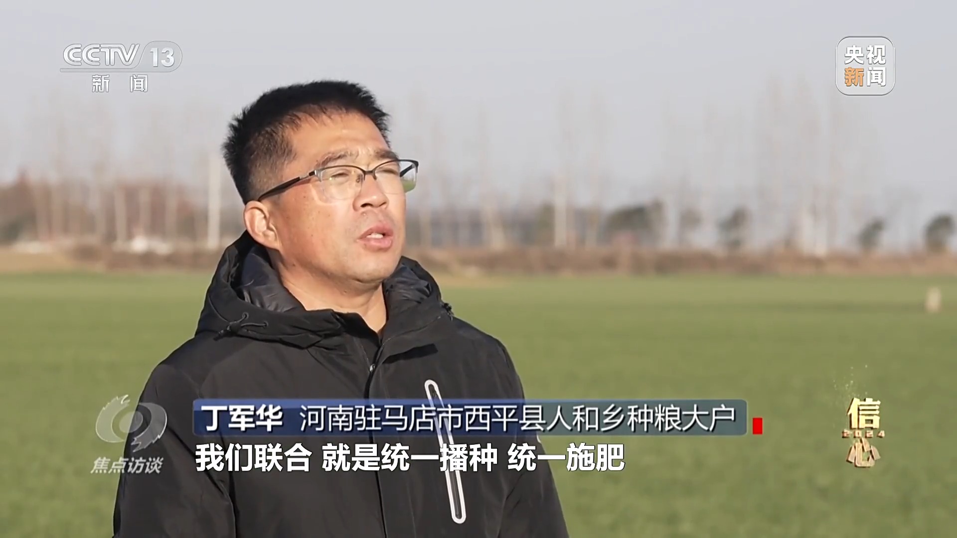 河南駐馬店市西平縣仁和鄉(xiāng)種糧大戶 丁軍華:“我們聯(lián)合就是統(tǒng)一播種、統(tǒng)一施肥、統(tǒng)一管理、統(tǒng)一打藥、統(tǒng)一購(gòu)銷和統(tǒng)一收割,做到了‘六統(tǒng)一’,共同抱團(tuán)去跟廠家談判、爭(zhēng)取最低的價(jià)格。這一次小麥播種,我們從黑龍江引進(jìn)大型氣吸型播種機(jī),地少了它不來,用這種播種機(jī),一畝地比普通播種機(jī)增產(chǎn)15%以上?!?/p>