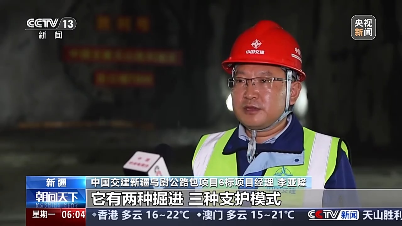 中國交建新疆烏尉公路包項(xiàng)目5標(biāo)項(xiàng)目經(jīng)理 王賀起:我們各種方案研究之后,就想如果在兩個(gè)主洞之間加一條服務(wù)隧道,這樣就把主洞分割成很多段落,增加了很多工作面。所以“三洞”加“長隧短打”是我們縮短工期的創(chuàng)意。