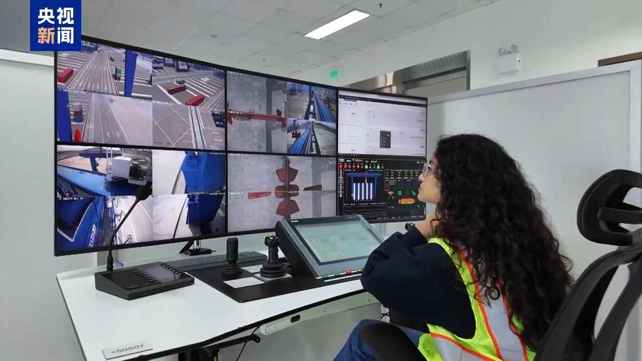 在遠(yuǎn)程操作區(qū),我們看到,通過電腦控制系統(tǒng)即可實(shí)現(xiàn)港口裝卸的全自動(dòng)化操作。員工無需再攀上高高的吊機(jī),只需坐在控制臺(tái)前,通過多角度實(shí)時(shí)監(jiān)控屏和搖桿手柄,便能精確完成數(shù)百噸甚至上千噸集裝箱的裝卸任務(wù)。