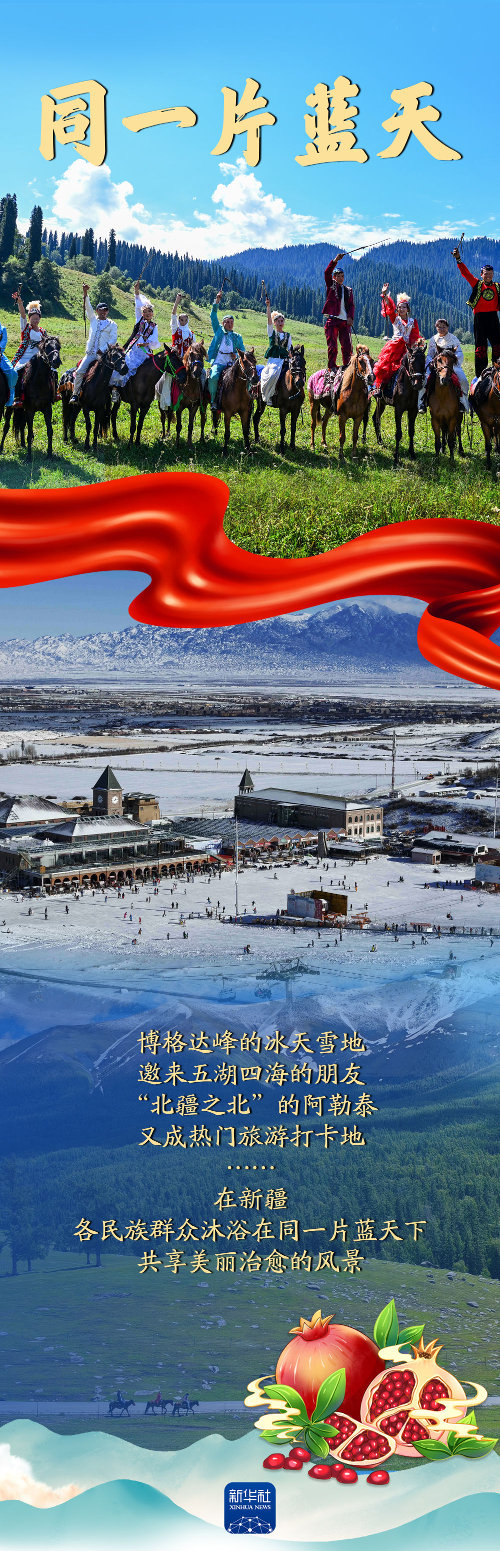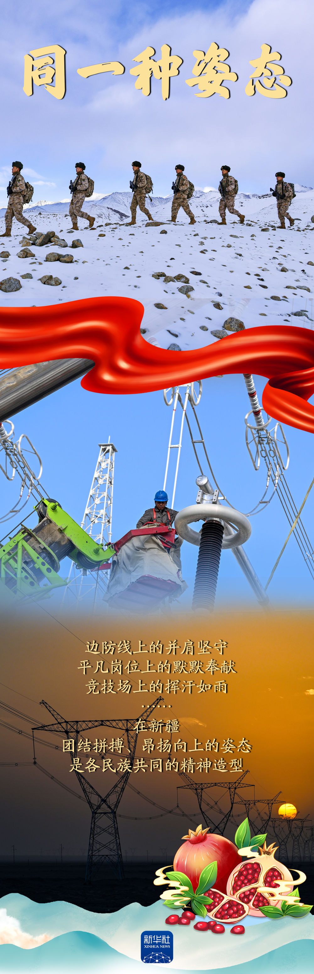 同一片藍天,同一個家園,同一條道路……在新疆,各族群眾“像石榴籽一樣緊緊抱在一起”,同心同德、同甘共苦,共同創(chuàng)造幸福美好的生活。讓我們跟隨這組海報,重溫這一年各族群眾“同”在新疆的故事。