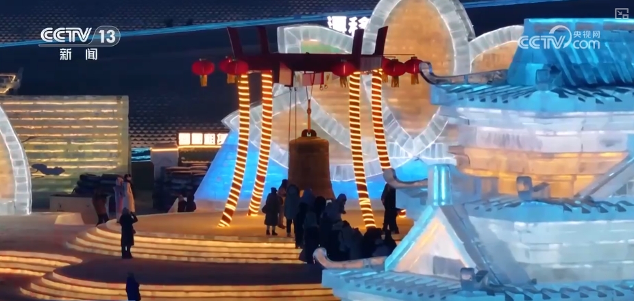 在園區(qū)中,香港特別行政區(qū)的金紫荊、澳門特別行政區(qū)的大三巴牌坊以及臺(tái)灣地區(qū)的臺(tái)北101大樓也被制作成冰雕景觀,吸引不少游客“打卡”合影。