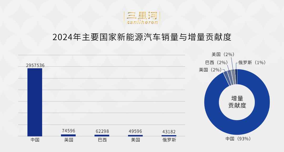 “2024年中國新能源乘用車銷量對世界的增量貢獻度是93%,英國、巴西、美國都是2%,俄羅斯1%,所以整個世界新能源車總體的增量貢獻基本就是在中國?!?/p>