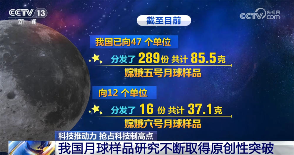 截至目前,我國已向47個單位分發(fā)了289份共計(jì)85.5克嫦娥五號月球樣品,向12個單位分發(fā)了16份共計(jì)37.1克嫦娥六號月球樣品。利用最新分發(fā)的嫦娥六號月球樣品,中國科學(xué)院國家天文臺和廣州地球化學(xué)研究所還在月背樣品特征、月球演化活動等領(lǐng)域取得了一批重要成果。2025年,更多月壤研究項(xiàng)目正在陸續(xù)部署和開展,各項(xiàng)研究加速向前,有望幫助我們認(rèn)識一個“全新”的月球。