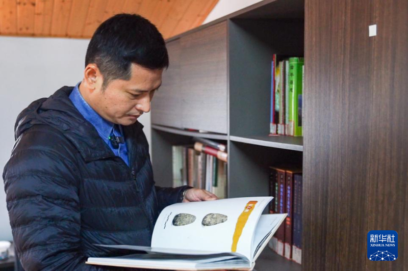 許桂榮在殼丘頭遺址博物館收集文物資料。新華網(wǎng) 肖和勇 攝