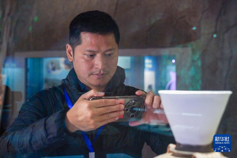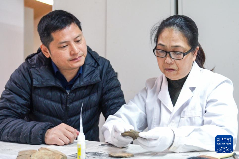 許桂榮在文物修復(fù)室了解文物修復(fù)過程。新華網(wǎng) 肖和勇 攝