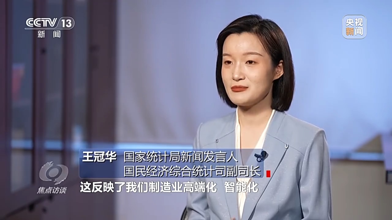 國家統(tǒng)計局新聞發(fā)言人、國民經(jīng)濟綜合統(tǒng)計司副司長 王冠華:2024年各地在因地制宜發(fā)展新質生產(chǎn)力,集成電路、人工智能、量子技術等這些領域都實現(xiàn)了新的突破。裝備制造業(yè)占規(guī)模以上工業(yè)的比重超過了34%,高技術制造業(yè)在規(guī)模以上工業(yè)中的比重超過了16%,兩個比重都是在穩(wěn)步提升,反映制造業(yè)高端化、智能化、綠色化發(fā)展的態(tài)勢在持續(xù)推進。還有一個數(shù)據(jù),2024年的每一天,我國有超過8萬輛汽車,340萬臺智能手機下線,4.7億個快遞包裹寄送,中國市場的活力、魅力和潛力有目共睹。