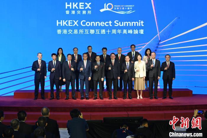 2024年11月18日,“香港交易所互聯(lián)互通十周年高峰論壇”在香港金融大會(huì)堂舉行。圖為嘉賓出席祝酒儀式。 中新社記者 李志華 攝