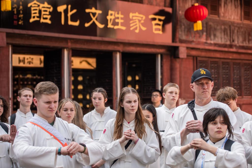 春天,湖北武當(dāng)山。野馬分鬃、白鶴亮翅、摟膝拗步……美國(guó)斯特拉孔中學(xué)學(xué)生梅肯娜以“武”會(huì)“友”,笑說(shuō)“我現(xiàn)在是功夫大師!”