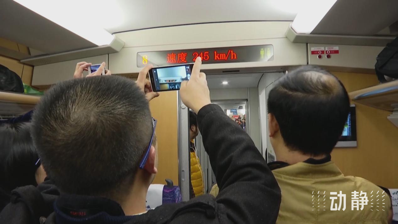 這趟列車的設(shè)計時速為250公里,開車不到10分鐘,時速就達到了245公里,乘客們紛紛用手機和相機記錄著顯示器上不斷攀升的車速。