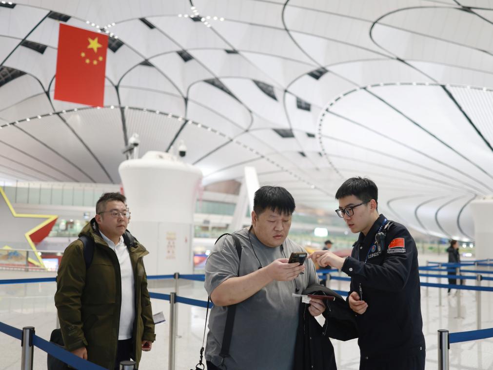 北京大興機場邊檢站迎來客流高峰,民警們24小時輪流執(zhí)勤,保障旅客平安順暢通關(guān)。