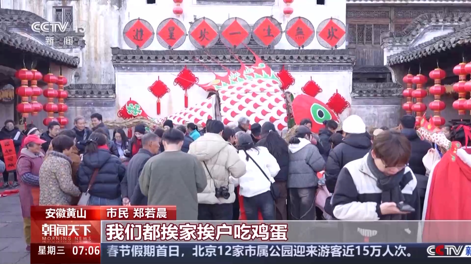 安徽黃山市民 鄭若晨:每年過年的時(shí)候,我們都挨家挨戶吃雞蛋。以前經(jīng)濟(jì)沒有這么發(fā)達(dá)的時(shí)候,雞蛋就是一個(gè)比較好的東西,拿出來招待客人。我們徽州人還是蠻延續(xù)傳統(tǒng)的春節(jié)習(xí)俗的。