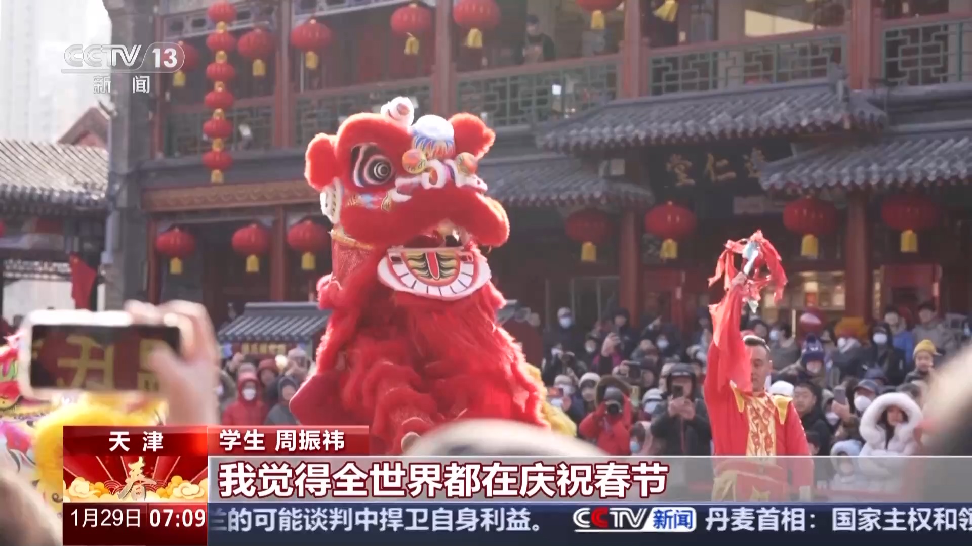 天津?qū)W生 周振祎:第一個(gè)非遺春節(jié),我覺得全世界都在慶祝春節(jié)。