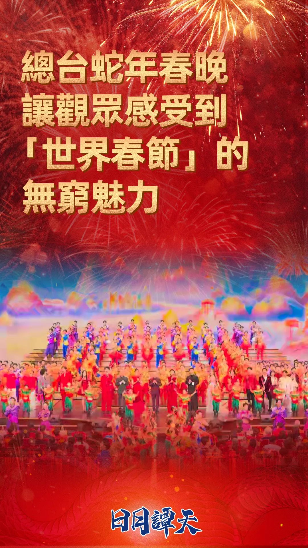譚主注意到,蛇年春晚創(chuàng)新運用新技術、多元展現(xiàn)國家發(fā)展成果,向全球受眾描繪“世界春節(jié)”的時代色彩。