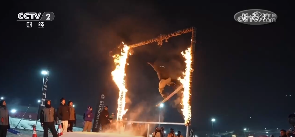春節(jié)期間,阿勒泰游客數(shù)量突破新高。大年初四一天,將軍山滑雪場(chǎng)接待游客量就突破1.8 萬(wàn)人次。雪友們白天暢滑粉雪,晚上還能體驗(yàn)刺激的滑雪穿火圈,從雪道上腳踏雪板快速滑下,一躍而起,穿過(guò)燃燒的火圈。