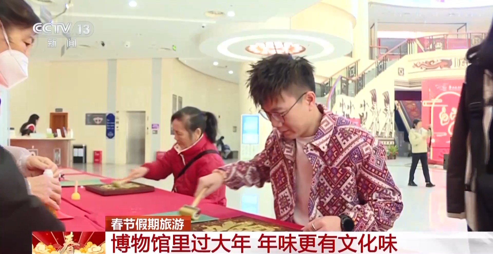 在廣西,民族博物館里“金蛇行萬里 迎新齊納福”——中國傳統(tǒng)春節(jié)民俗系列文化活動火熱開展,“?!弊滞赜?、剪窗花等活動讓觀眾把“福氣”帶回家。在壯族文化展廳,非物質(zhì)文化遺產(chǎn)代表性傳承人現(xiàn)場展示織錦技藝、繡球制作技藝,傳遞對美好生活的愿景。
