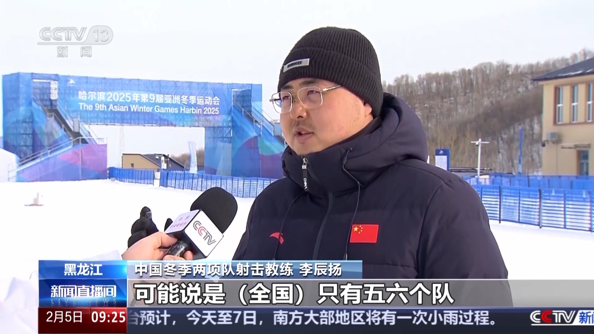 中國冬季兩項隊射擊教練 李辰揚:從前兩年開始比賽的時候,可能說是全國只有五六個隊,到現在已經開始有十幾支隊伍了,成績也已經開始逐步在提高了?;旧犀F在年輕的后備力量還是非常多的。