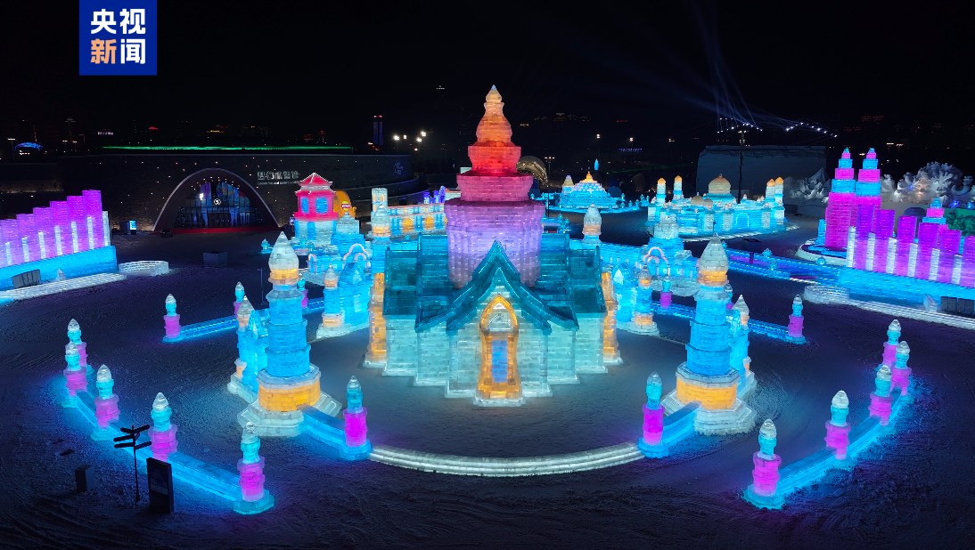 崔師堯說(shuō),“哈爾濱作為一個(gè)冰城,我們想通過(guò)這種方式傳播冰雕文化。在整體構(gòu)成上,這些地標(biāo)性冰雕建筑環(huán)繞著主塔,以傳達(dá)‘冰雪同夢(mèng)、亞洲同心’的主題。”