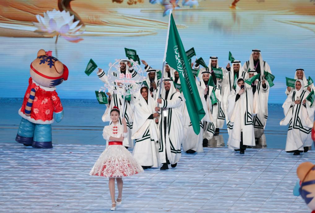 2月7日,沙特阿拉伯體育代表團(tuán)在第九屆亞洲冬季運(yùn)動(dòng)會(huì)開幕式上入場(chǎng)。新華社記者 楊磊 攝