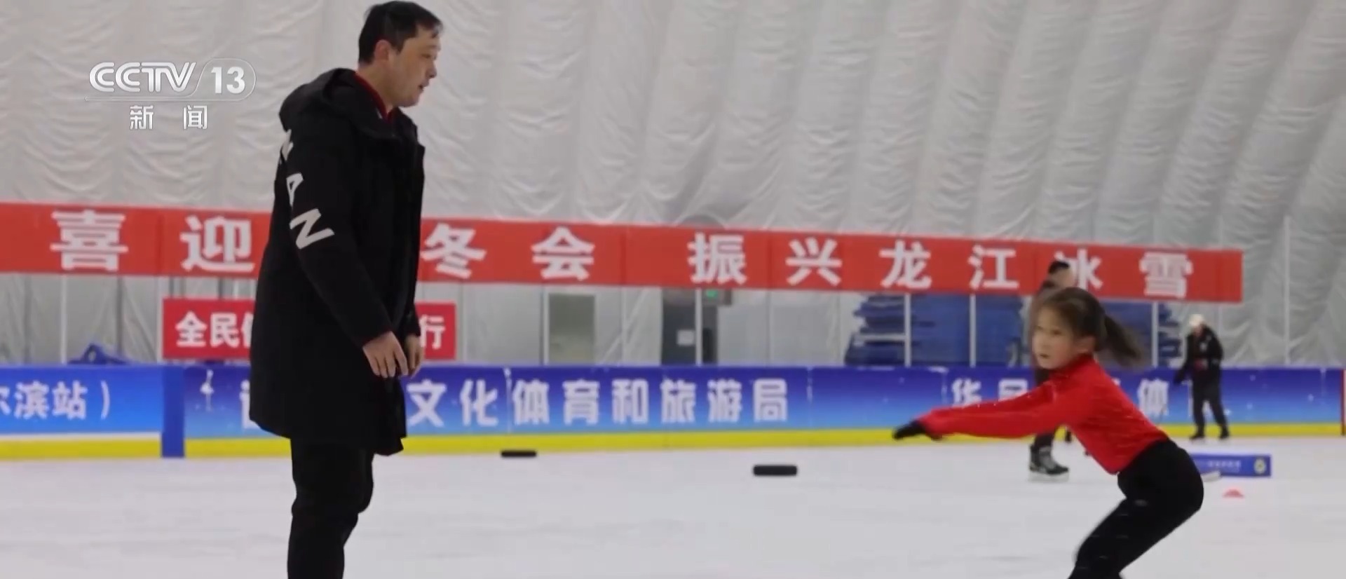 熱鬧的地方可不只在冰雪大世界,在一家冰上運動氣膜館,雖然已經是夜晚,但是館內依舊人聲鼎沸,在公益免費的時段,附近的居民群眾都可以來到這里滑冰、打冰球。這里還會安排學校的冰雪運動培訓課程,孩子們在教練的指導下認真學習滑冰技巧。同時,這里還經常舉辦夜間冰雪運動賽事,吸引眾多冰雪運動愛好者參與。