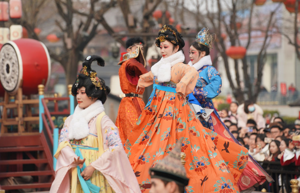 2025年1月31日,游客在陜西西安大唐不夜城景區(qū)觀看以唐代歷史文化為背景創(chuàng)作的舞劇。新華社記者 邵瑞 攝