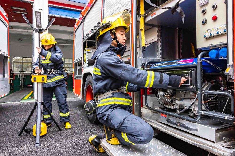 2025年1月29日,消防救援人員在貴州省安順經濟技術開發(fā)區(qū)消防救援大隊檢查裝備。新華社發(fā)(陳熙 攝)