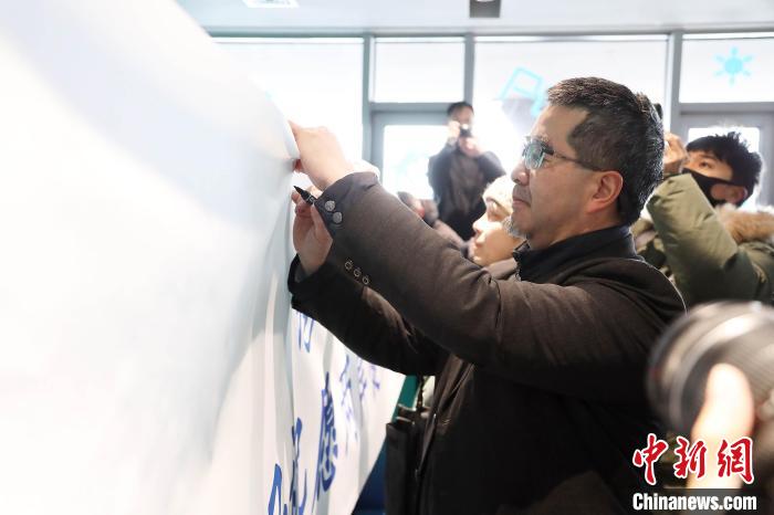 2月11日,北京延慶小海坨山,兩岸學(xué)子為2025年哈爾濱亞洲冬季運(yùn)動(dòng)會(huì)遙送祝福?!≈行律缬浾?李雪峰攝