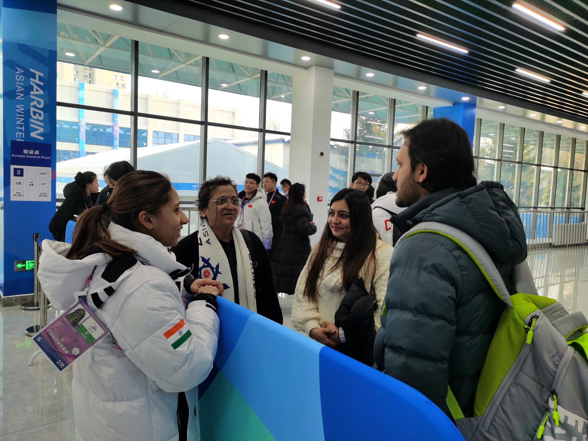 印度速度滑冰選手詩魯蒂的家人,也選擇這次亞冬會的機會,來到哈爾濱與她團聚。詩魯蒂的姐姐巴克蒂告訴記者,印度的滑冰訓練條件有限,為了追逐夢想,妹妹常年在美國訓練,一家人難得有機會聚在一起。