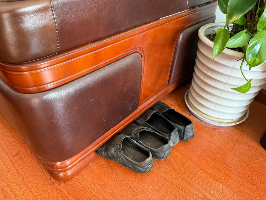 張義民辦公室里放著換下來(lái)的鞋子。新華社記者 郭敬丹 攝