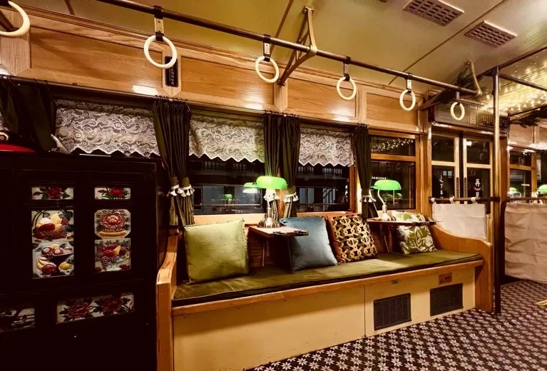咣當(dāng)咣當(dāng),咖啡飄香,長(zhǎng)春市54路有軌電車文旅專列沿著軌道,駛向雪夜深處……