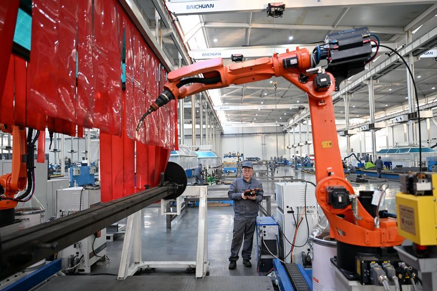 2月18日,工人在唐山百川機(jī)器人共享智能制造工廠內(nèi)測(cè)試機(jī)器人產(chǎn)品性能。新華社記者 牟宇 攝