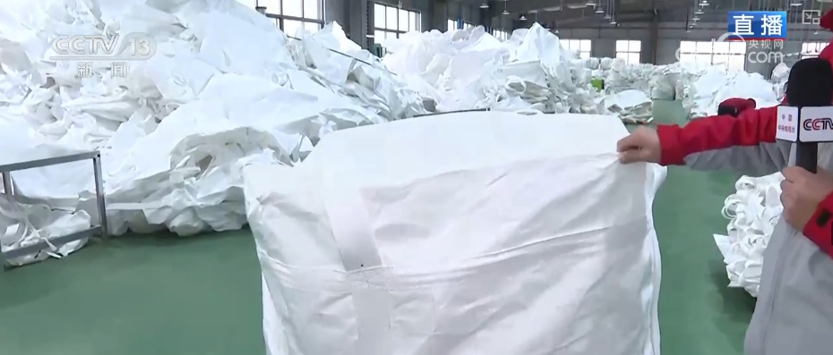 這個(gè)叫集裝袋,俗稱(chēng)“噸袋”,是化工企業(yè)和冶金企業(yè)等行業(yè)大量使用的耗材。這是一個(gè)能裝三噸重東西的、高質(zhì)量、可出口的集裝袋。