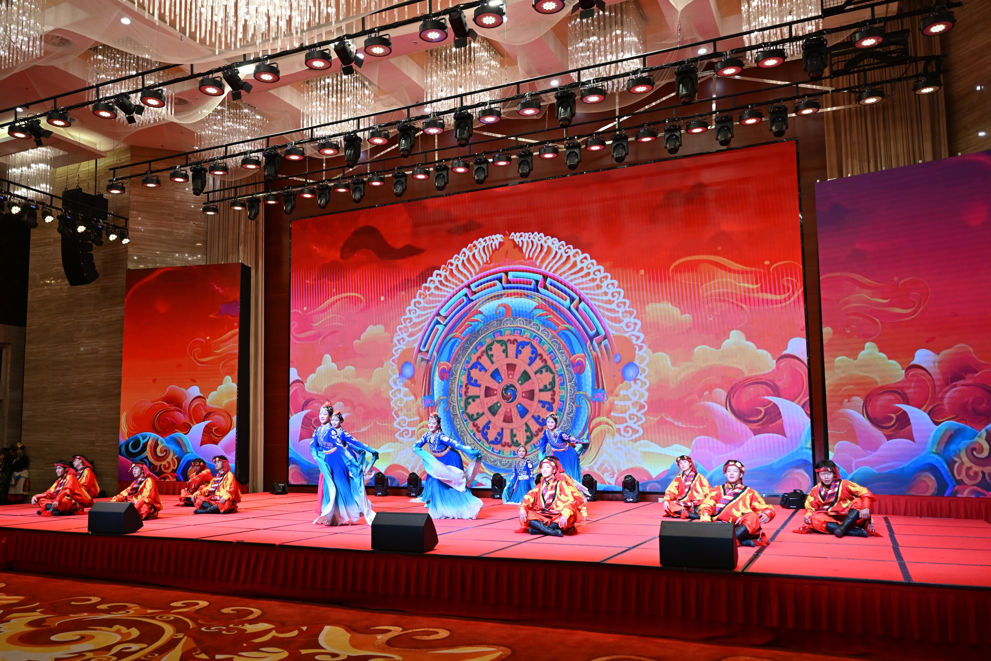 近日,西藏自治區(qū)各族各界喜迎2025年藏歷木蛇新年茶話會在拉薩舉行。這是文藝工作者正在表演節(jié)目。記者 旦增西旦 攝