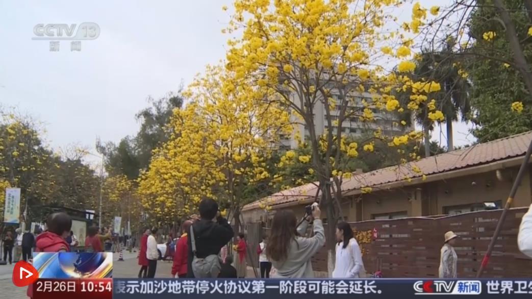 在廣東廣州市的洲頭咀公園,近1公里長的濱江步道上,黃花風(fēng)鈴木爭相盛開,宛如一條“黃金大道”,吸引了不少市民。除了賞花看景,當(dāng)?shù)剡€結(jié)合花期舉辦了各類文化活動(dòng),人們通過VR、AR等數(shù)字化技術(shù),沉浸式游覽公園周邊的文化街區(qū)場景。