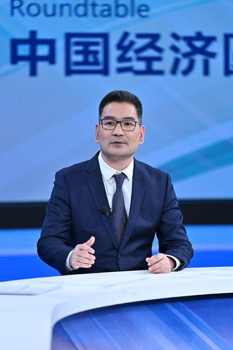 ??政府工作報告起草組成員、國務(wù)院研究室綜合一司副司長黃良浩在第十四期“中國經(jīng)濟(jì)圓桌會”錄制現(xiàn)場發(fā)言。新華社記者 李鑫 攝