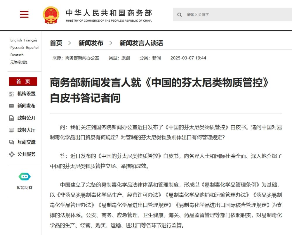 答:近日發(fā)布的《中國(guó)的芬太尼類(lèi)物質(zhì)管控》白皮書(shū),向各界人士和國(guó)際社會(huì)全面、深入地介紹了中國(guó)的芬太尼類(lèi)物質(zhì)管控立場(chǎng)、舉措和成效。