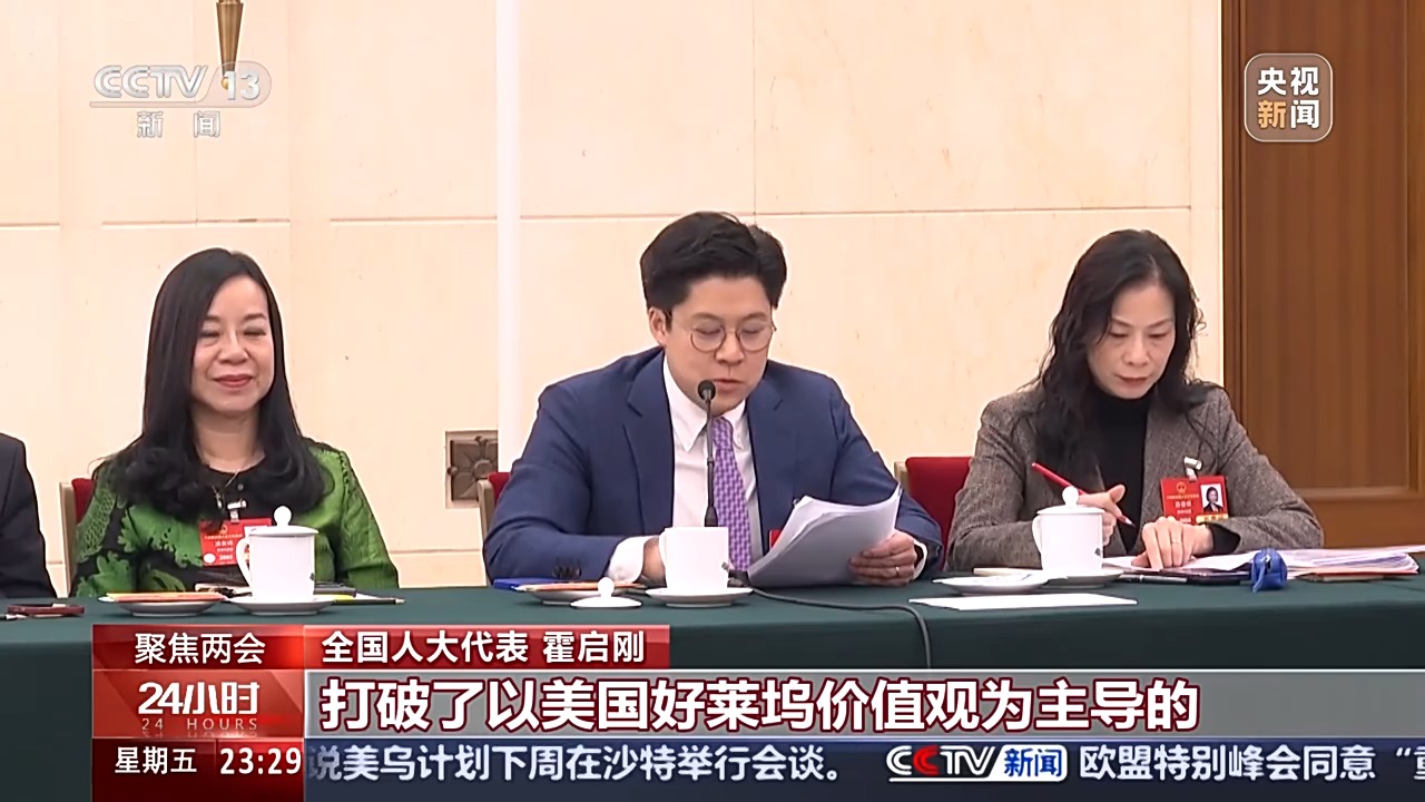 全國人大代表 霍啟剛:最近的《哪吒2》更創(chuàng)下票房歷史,打破了以美國好萊塢價值觀為主導的這種說故事的方式,成功以我們中國的故事和中國的哲學感染世界的觀眾。我認為香港可以更加用文化+的概念跟理念,在文化產業(yè)發(fā)展上作出更多的貢獻,更以香港國際橋梁和傳統(tǒng)優(yōu)勢,實現(xiàn)中國文化抱團出海等,讓文化事業(yè)和文化產業(yè)得以相輔相成,把香港發(fā)揮成中華文化產業(yè)中的“金融港”和“出口港”。