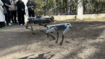 楊?。ㄗ蠖┖屯聻榭蛻粽故疽豢钚袠I(yè)應(yīng)用四足機器人。