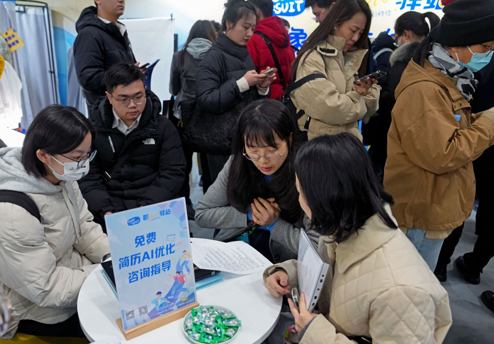 在上海一個大型招聘會現(xiàn)場,工作室團隊為求職者進行簡歷優(yōu)化指導(dǎo)。