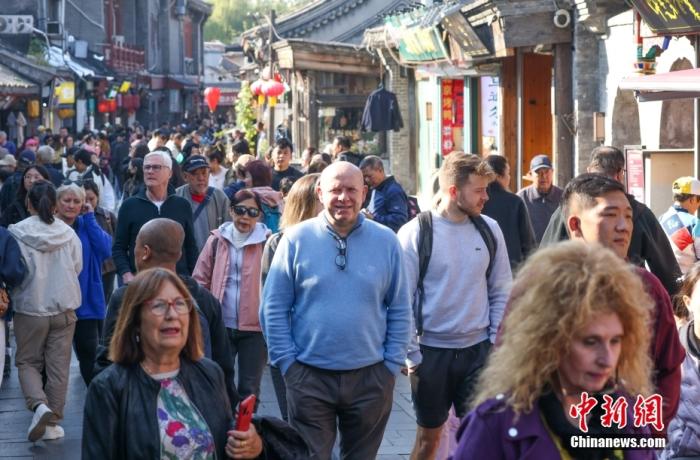 資料圖:北京什剎海地區(qū),外國(guó)游客在胡同內(nèi)參觀游覽。 中新社記者 賈天勇 攝