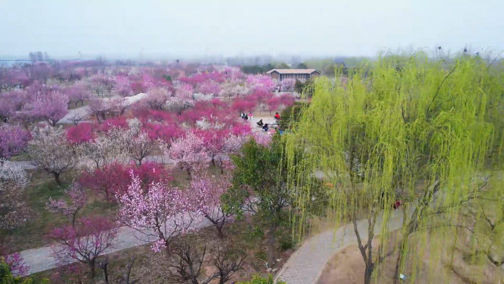 春日里,鄭州市惠濟(jì)區(qū)黃河灘地公園黃河梅園中的梅花次第開放,如云似霞,春意盎然。“花樣”美景吸引了眾多游客前來(lái)打卡。