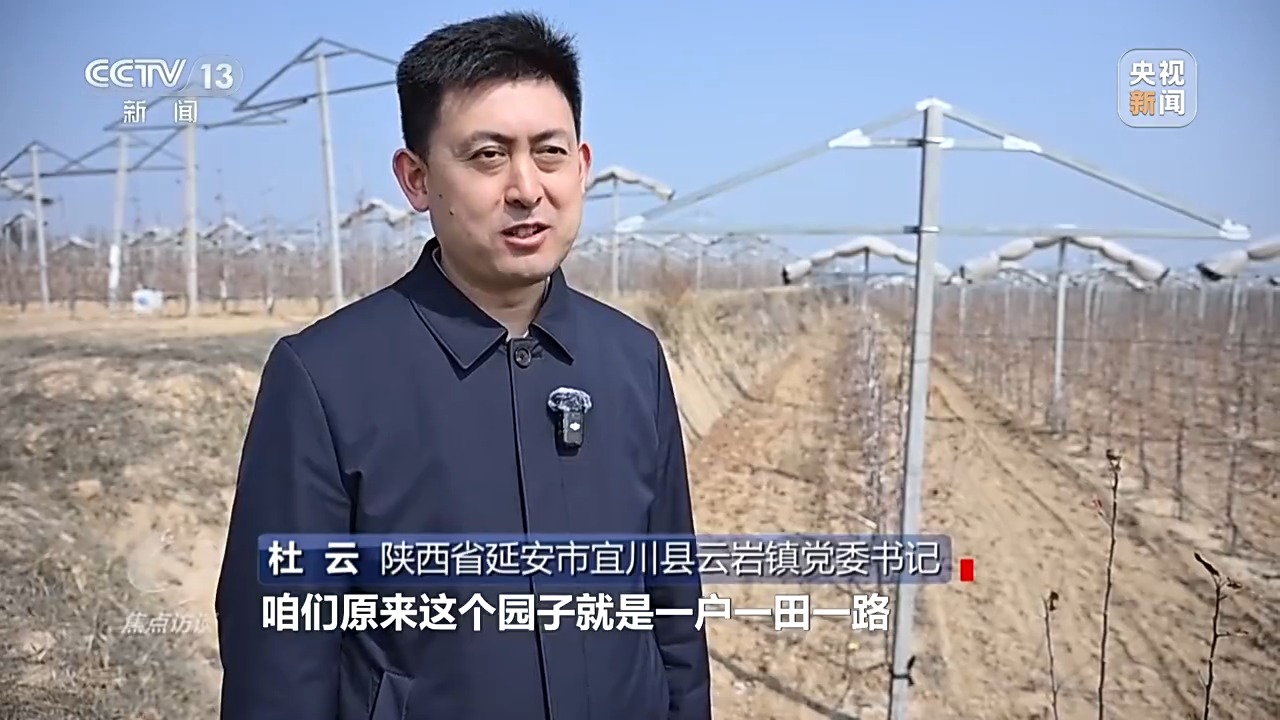 陜西省延安市宜川縣云巖鎮(zhèn)黨委書記 杜云:“原來這個園子是一戶一田一路,家家都要有生產(chǎn)路,原來有108塊,小田并大田以后并成了24塊,地界少了土地就多出來了,漲了95畝地。小田并大田以后以株代畝,土地不是按畝分,是按株分,一畝地能栽110株。如果你有一畝地就給你分110株,兩畝地分220株。”