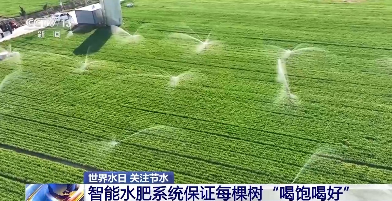 同在山西省運城市的萬榮縣,是著名的蘋果產(chǎn)區(qū)。智能水肥系統(tǒng)通過密布田壟的滴灌管網(wǎng),可以精準(zhǔn)輸送水和養(yǎng)分,讓澆地變?yōu)闈矘?,雖然地里看不見水,但是每棵樹卻都可以“喝飽喝好”。這種春澆模式,讓單次澆水的節(jié)水效率達(dá)到90%左右。