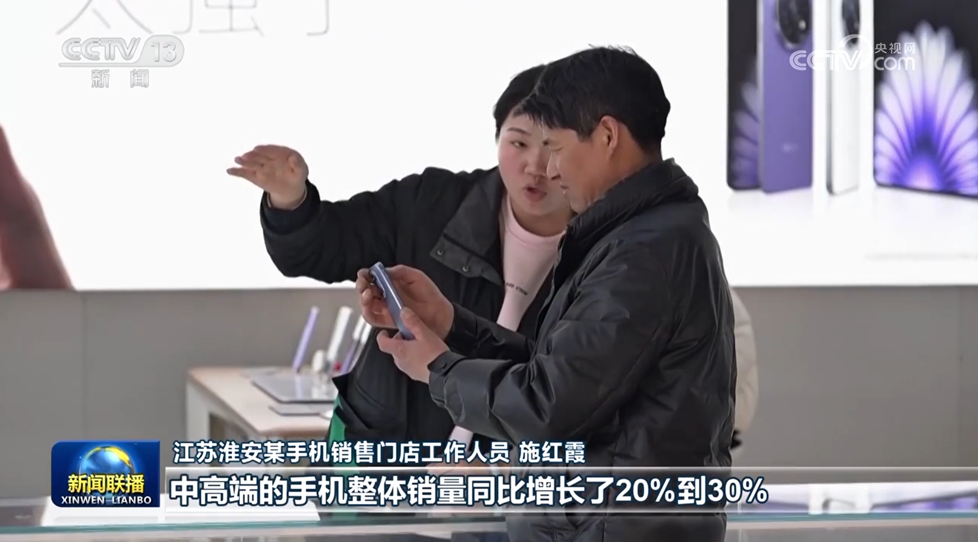政策帶動下,手機消費市場結(jié)構(gòu)向中高端遷移。據(jù)初步統(tǒng)計,全國參與手機等數(shù)碼產(chǎn)品購新補貼政策的線下市場主體超3.3萬戶、門店超7萬家。