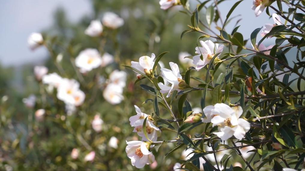 三月烏蒙,春意正濃。時(shí)下,正是油茶花盛開的時(shí)節(jié),貴州省威寧彝族回族苗族自治縣短柱油茶高標(biāo)準(zhǔn)示范基地,油茶花次第開放。