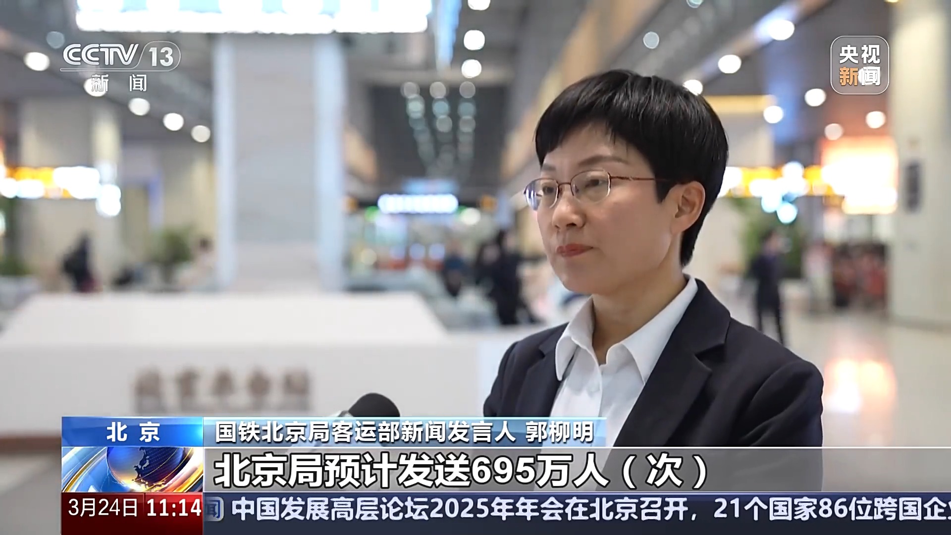 國鐵北京局客運(yùn)部新聞發(fā)言人 郭柳明:清明運(yùn)輸期間5天,北京局預(yù)計(jì)發(fā)送695萬人次,同比增幅4.6%。高峰日在4月4日,預(yù)計(jì)發(fā)送165萬人次??土髦饕性跐?jì)南、太原、鄭州、沈陽、青島、西安以及北京至天津、保定、石家莊、張家口往返間。