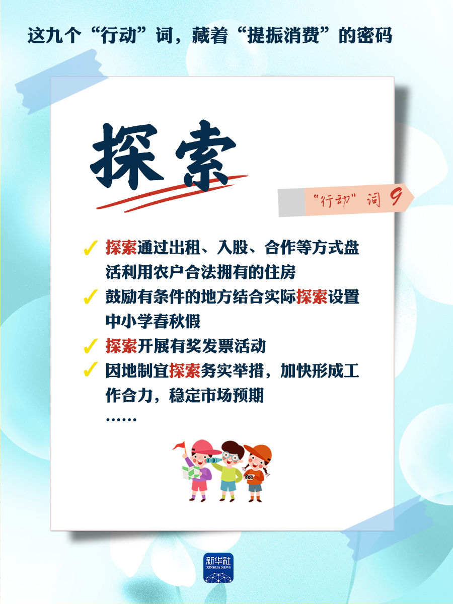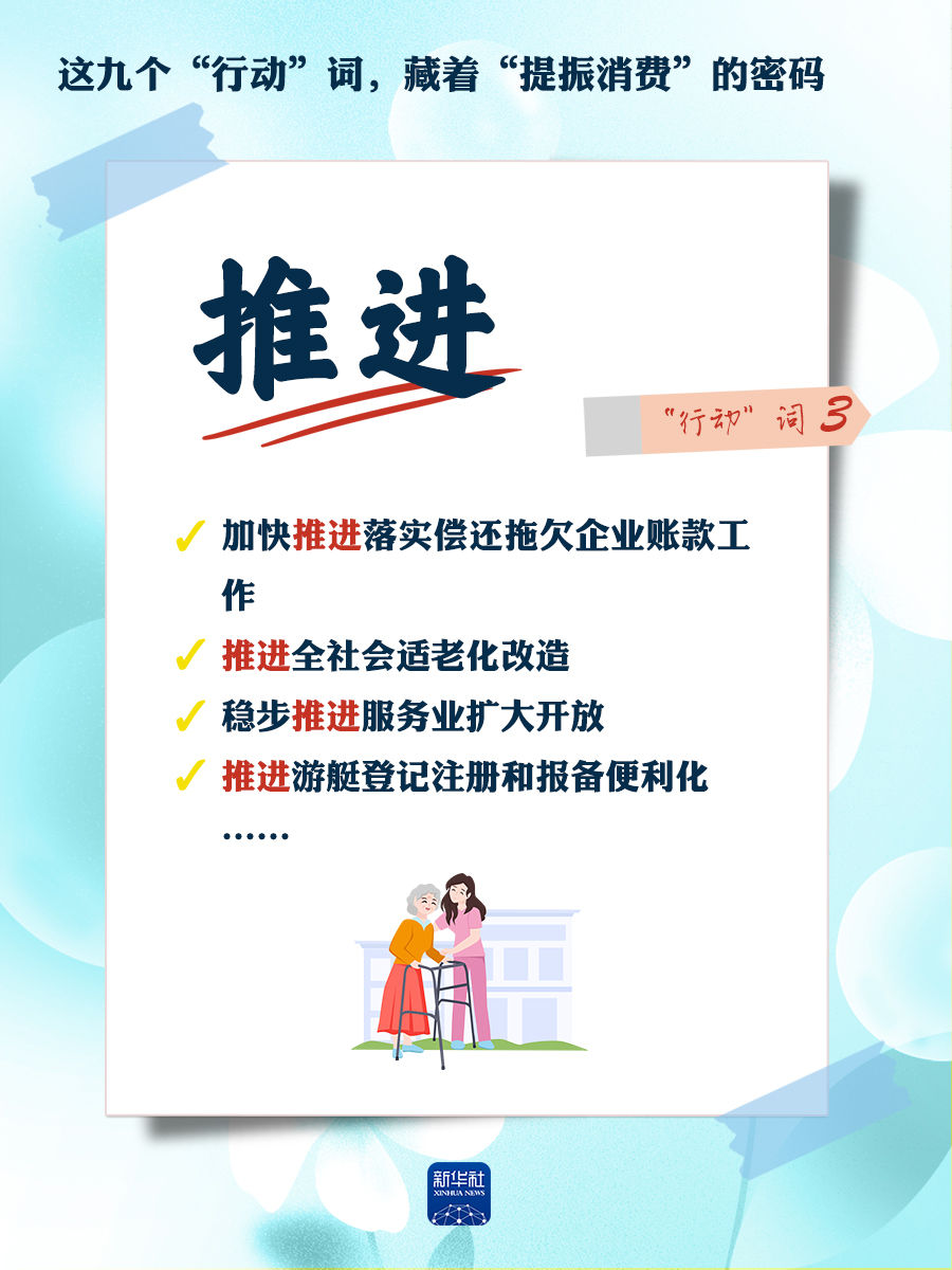 我們梳理出“方案”中使用頻率較高的九個“行動”詞,從這些不同維度的“行動”詞中,解讀“專項行動”的豐富內(nèi)涵和政策“含金量”,看看哪些是立竿見影、吹糠見米的惠民行動?哪些是需要加力擴(kuò)圍、加快補(bǔ)齊的消費(fèi)短板?還有哪些是需要有序推進(jìn)、以點(diǎn)帶面的消費(fèi)“新”點(diǎn)?