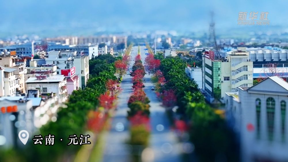 元江攀枝花正值盛花期,火紅的花朵綴滿(mǎn)枝頭,如一團(tuán)團(tuán)燃燒的火苗。