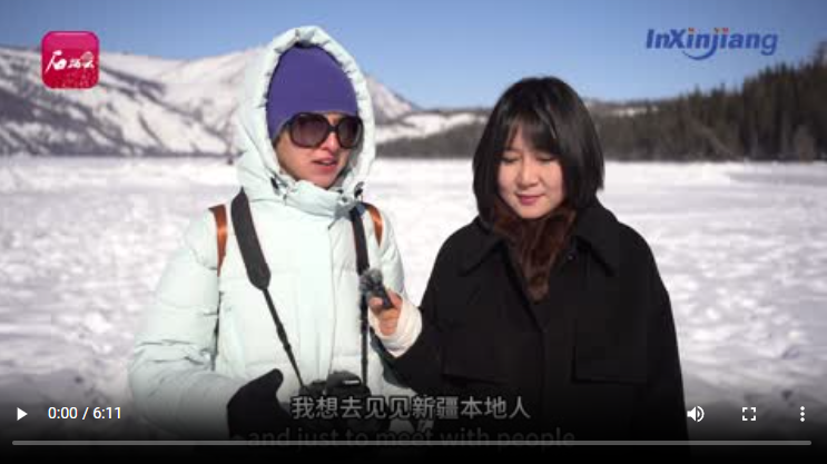 受邀做客本期《InXinjiang》欄目訪談的,是來自白俄羅斯的記者瑪麗娜。這是她第二次到新疆,走在喀納斯湖冰面上,她被眼前的美景和當?shù)刎S富多彩的文化活動深深吸引?,旣惸入y掩內(nèi)心歡喜:“現(xiàn)代化基礎(chǔ)設(shè)施與自然美景相得益彰,這是我喜歡新疆的理由。”